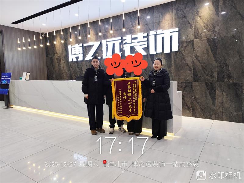 蘭墅頤景4棟2502業(yè)主在完工后專(zhuān)程送來(lái)錦旗,向項(xiàng)目經(jīng)理汪孔杰,設(shè)計(jì)師閆敏,客戶(hù)部經(jīng)理趙金花表達(dá)誠(chéng)摯感謝,